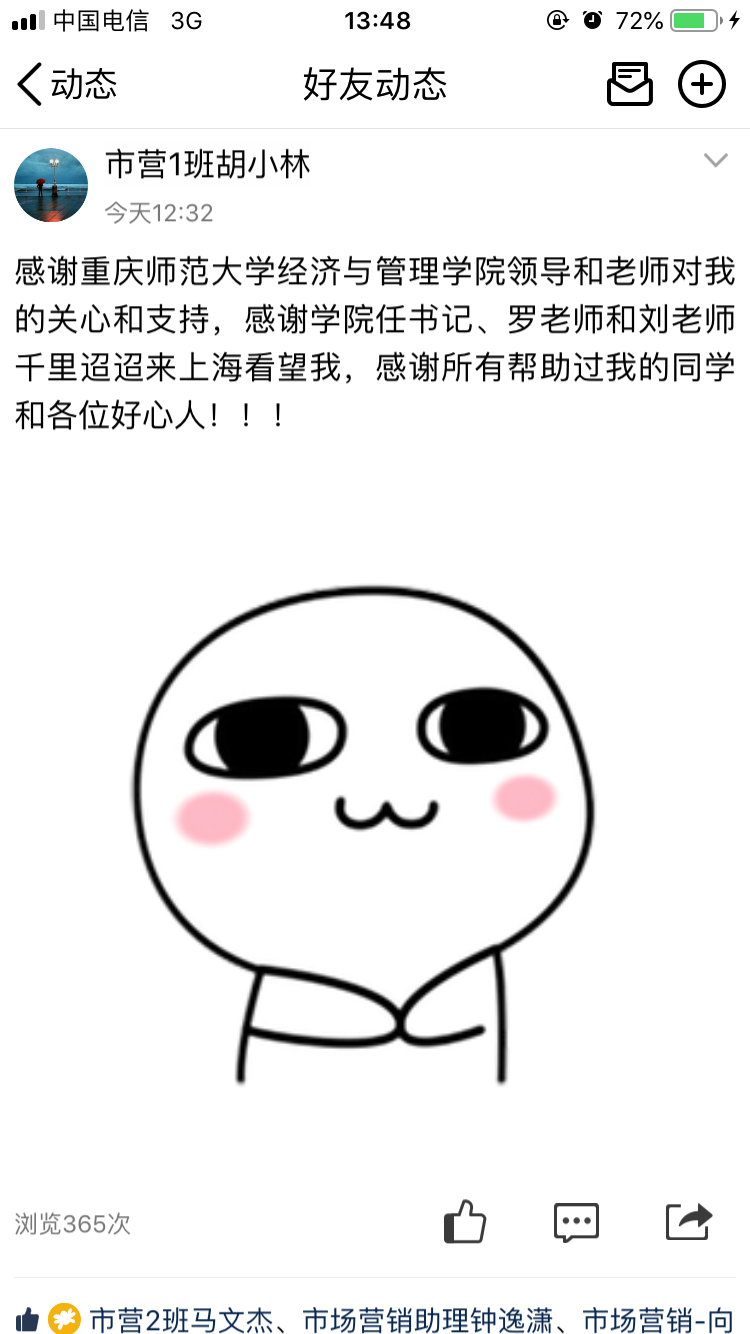 2019年4月3日,365体育官方唯一入口2016级市场营销专业学生胡小林被确诊为ALK阳性间变性大细胞淋巴瘤,这是一种少见的非霍奇金恶性淋巴瘤,这无疑是对他以及家人是一个沉重的打击。