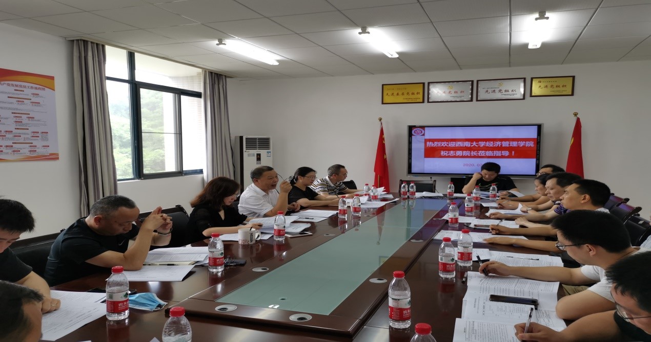 7月22日下午,西南大学经济管理学院院长祝志勇教授来我院指导学科建设工作。学院领导班子及学科骨干教师共计20余人参加会议。