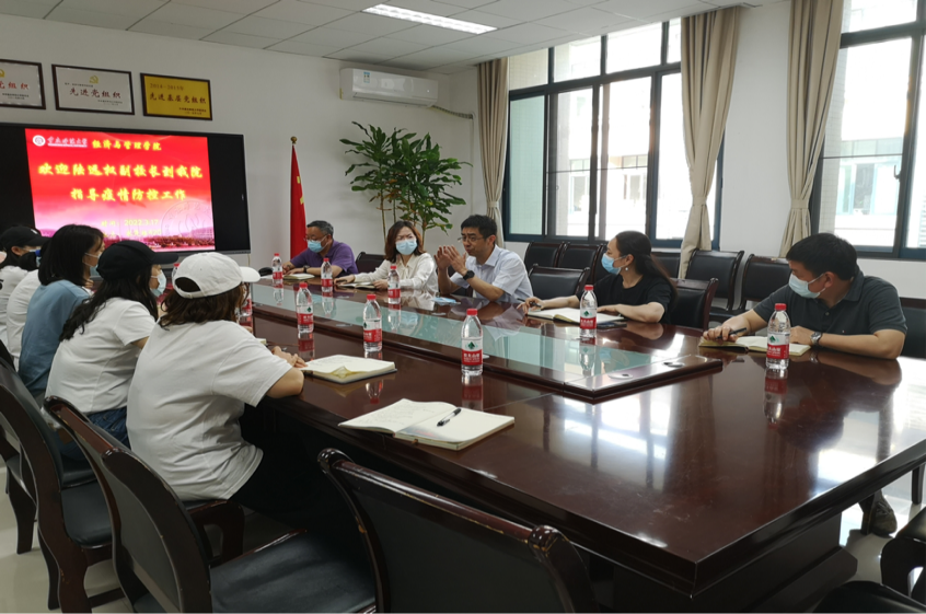 3月17日,校党委常委、副校长陆远权莅临我院现场指导疫情防控工作。他指出,当前疫情防控正处在防扩散、防外溢的关键阶段,一方面要继续加强闭环监管,全面排查隐患堵塞漏洞,及时整改发现的问题。另一方面要坚持疫情防控与教学两手抓、两不误,利用慕课、雨课堂等多种在线教学平台,有序平稳开展线上教学工作,推动实现线上教学与线下课堂教学同质等效。此外,还要做好学生的人文关怀和心理疏导,防止发生次生事故,让学生充分感受到温暖和关爱,全力维护校园安全稳定。