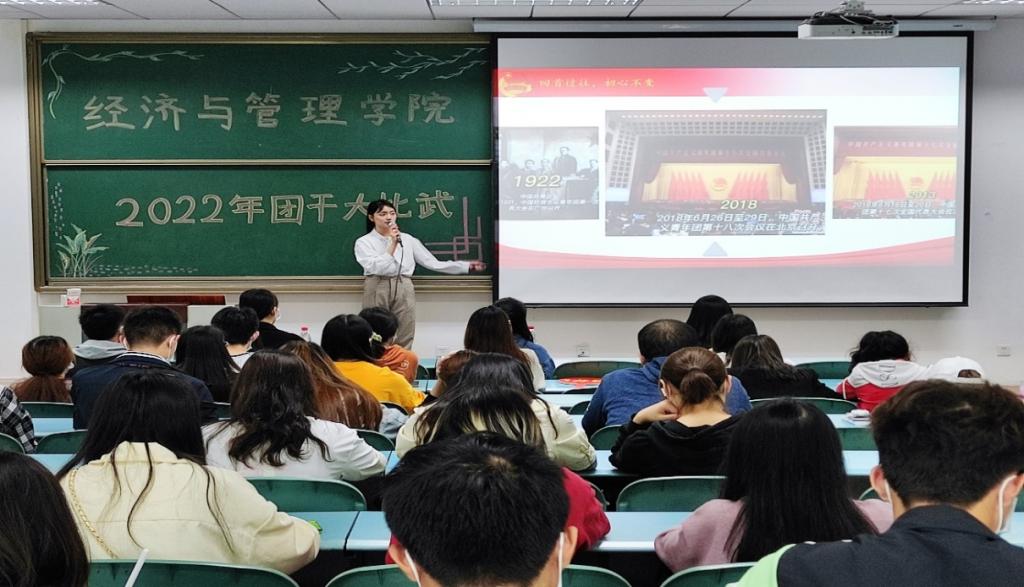比赛伊始,主持人向在场观众介绍评委和评分细则。随后,全体人员起立,齐唱中国共青团团歌。而后10名优秀团干部围绕活动主题,紧密结合时政与团干部岗位实践,进行3−5分钟的微团课演讲。通过既定环节的精彩角逐,冯欢欢同学荣获决赛一等奖,此外还有二等奖2名、三等奖3名、优秀奖4名。