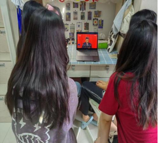 图4 济与管理学院观摩学习党的二十大开幕会学生线上会场