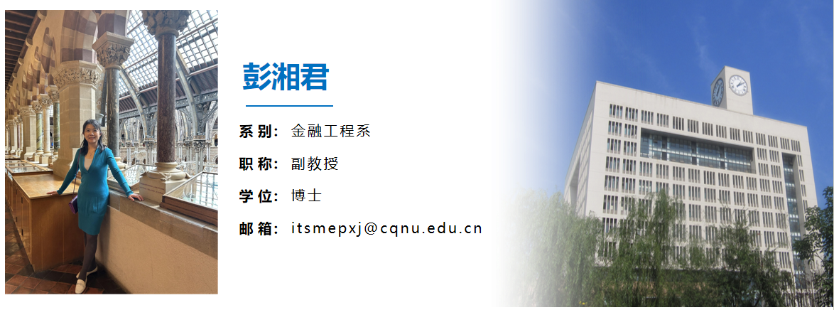 彭湘君,女,汉族,博士,副教授,硕士生导师,国家留学基金委公派英国University of East Anglia(2023-2024)、美国Troy University访问学者(2017-2018),2020年重庆师范大学青年拔尖人才,重庆区域经济学会理事。